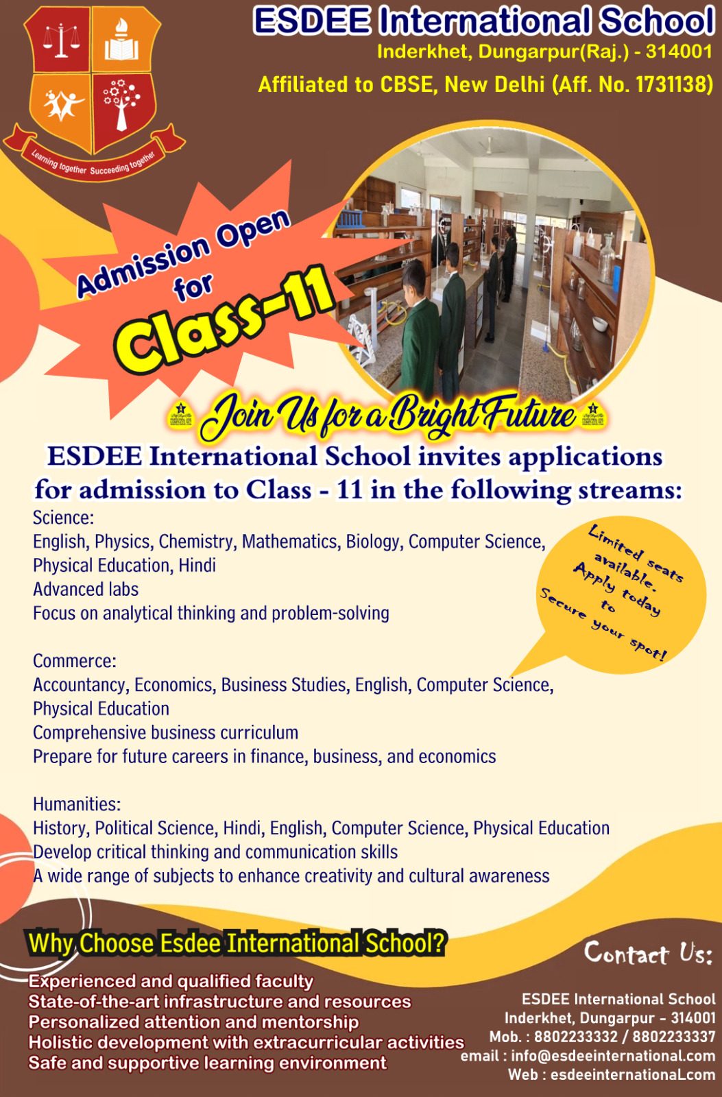 It was way back when our beloved Late Mrs. Ajabdevi Ji and Mr. Ganeshlal Ji expressed their dream to contribute to the development of the city that gave them everything. Taking forward the dream of our Guardian we are proud to announce the launch of ESDEE International School at Dungarpur. Shaping young minds is one of the biggest responsibilities and challenge for a school.